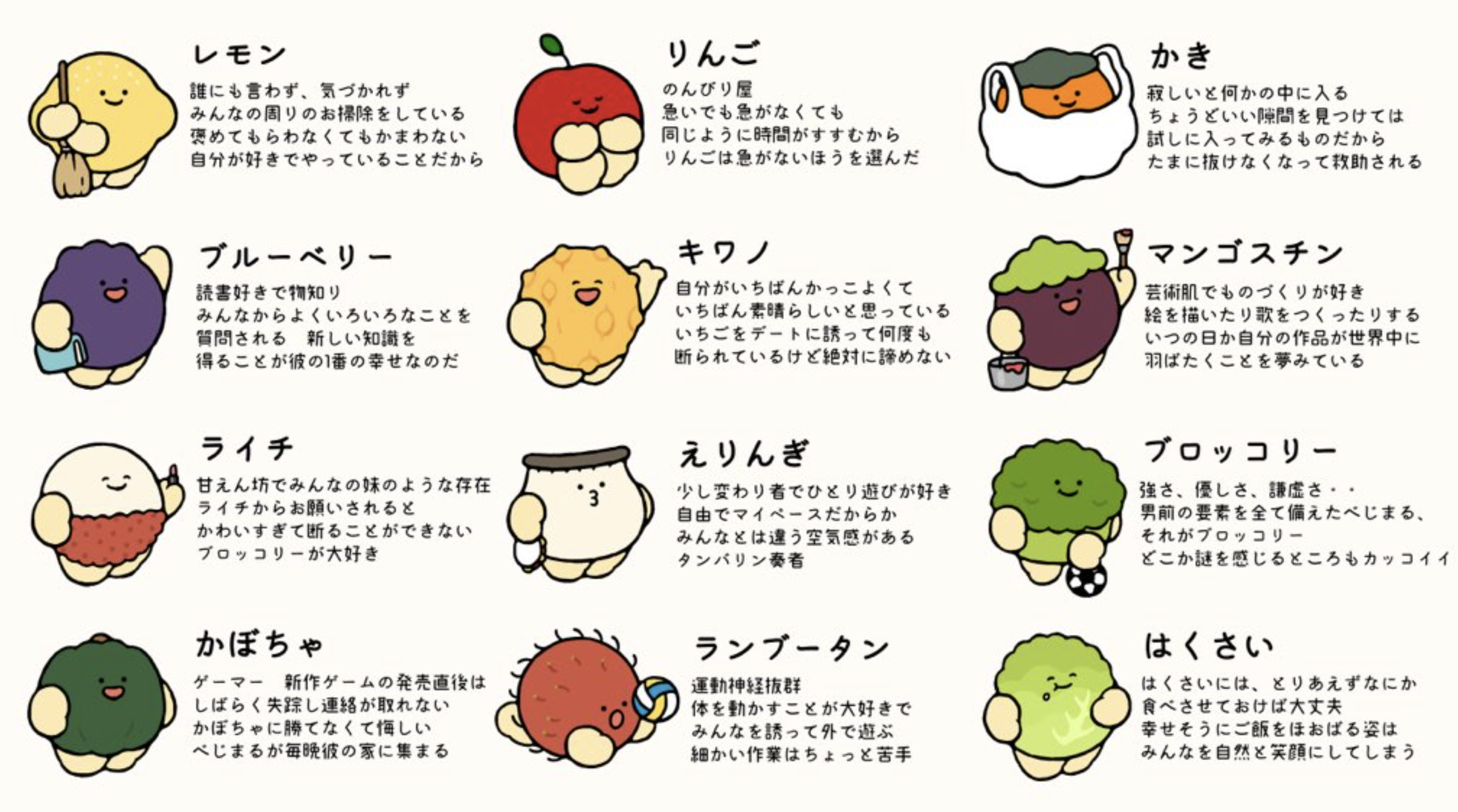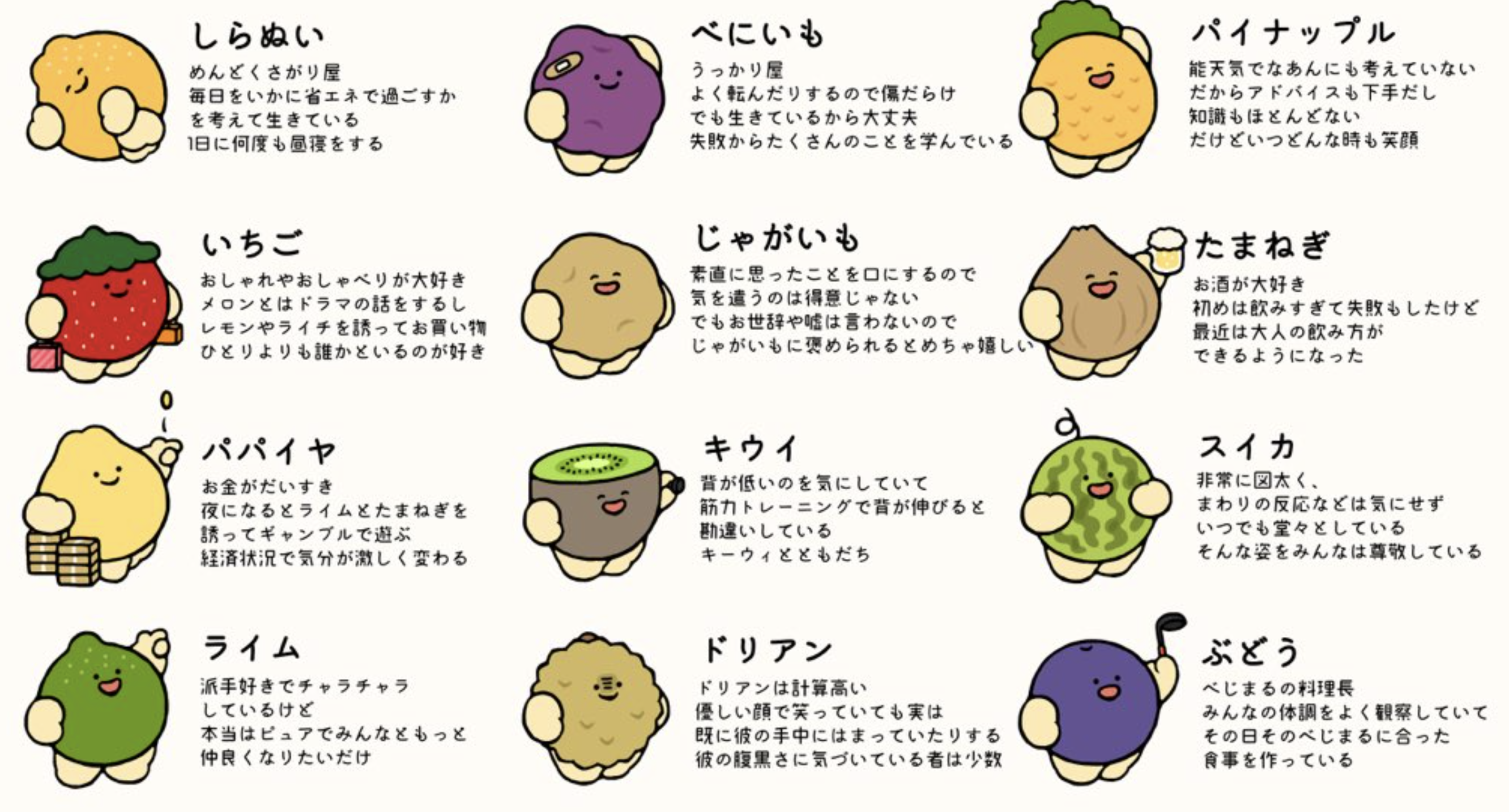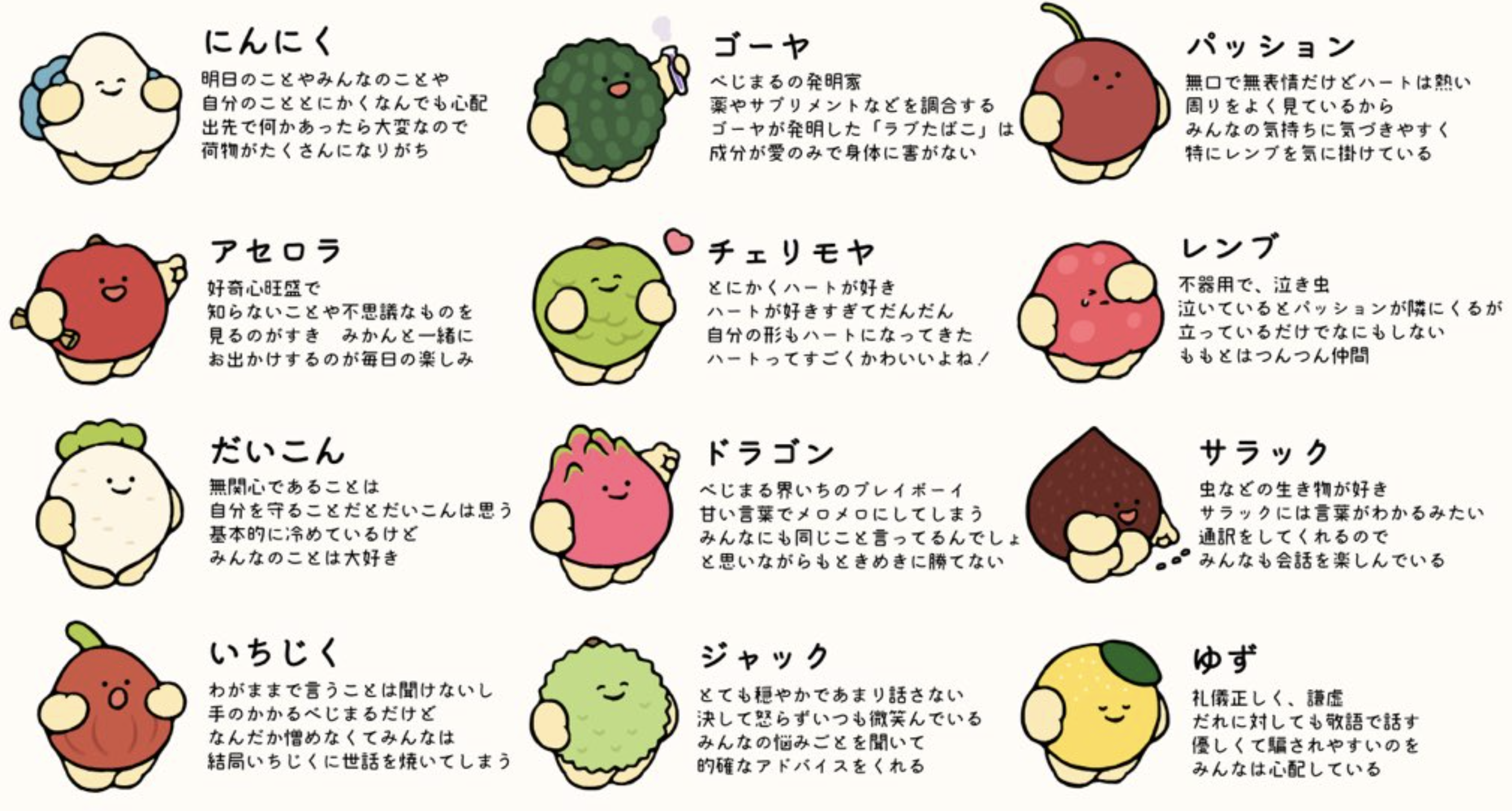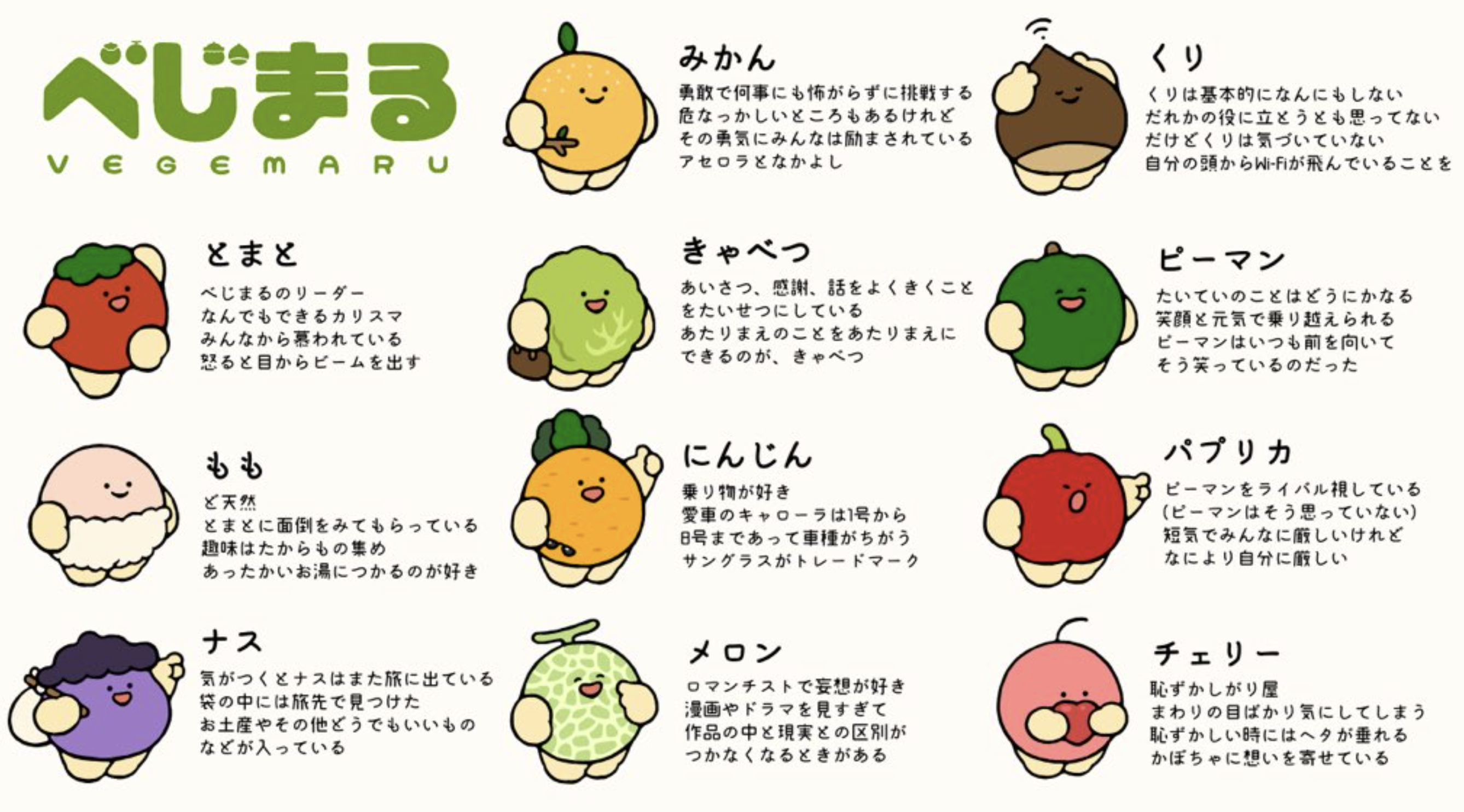 「べじまる」は、野菜と果物の妖精をテーマにしたキャラクターなんです!