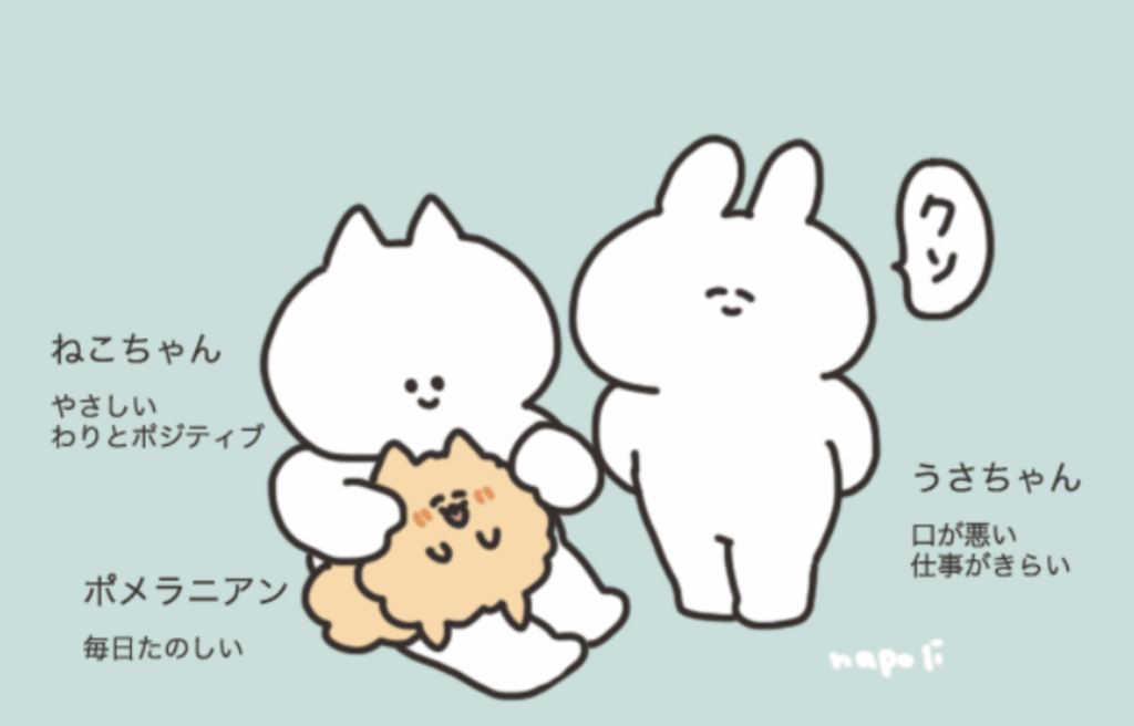 口の悪いうさちゃんの生みの親であるナポリさんは、普段は会社員をしながら活動しているイラストレーターです。TwitterのアカウントIDは@ebi_iiiで、主にX(旧Twitter)で活動されているんですよ。
