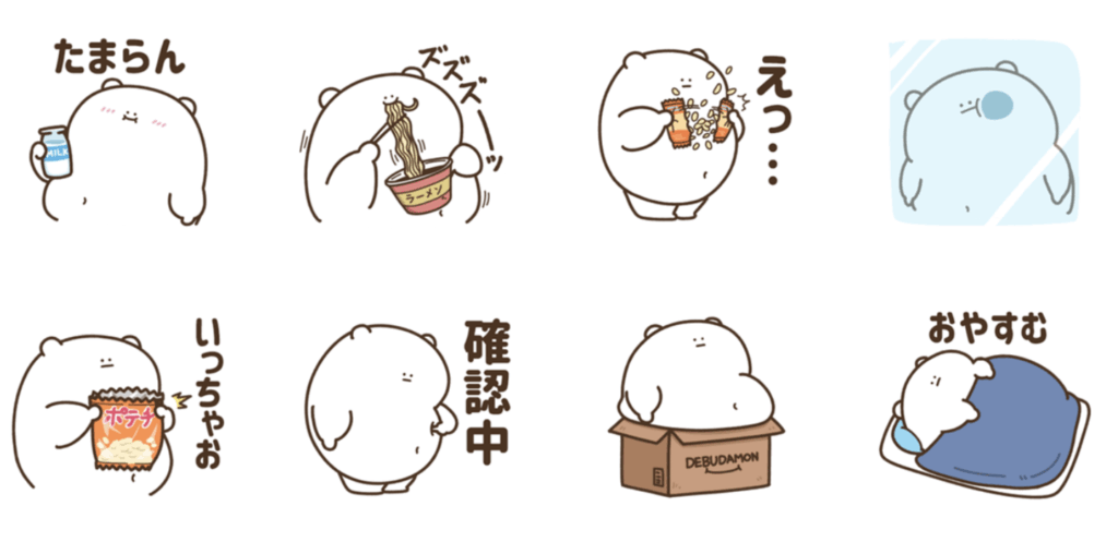 デブくまの最大の人気の理由は、LINEスタンプでの圧倒的なバリエーションの豊富さです。様々なシチュエーションに対応したスタンプが揃っているので、日常のLINEトークで大活躍するんですよ!