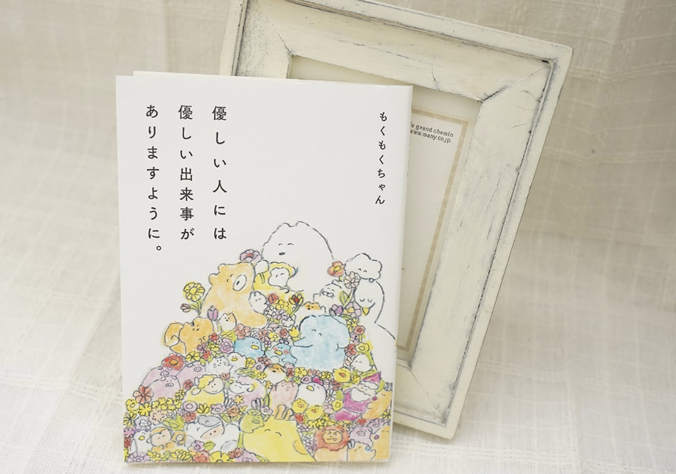 もくもくちゃんは、Twitterでの人気を受けて著書6冊を出版しているんです!代表作には『優しい人には優しい出来事がありますように。』(ワニブックス)や『きょうちゃん』(KADOKAWA)、『いつでもきみのままがいい。』などがあります。
