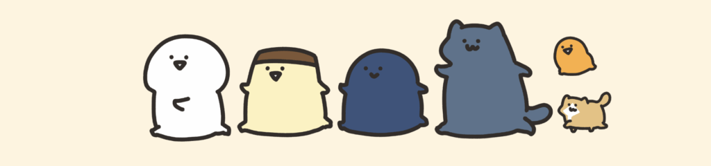 シリーズの主人公。まるっこい体と優しい性格が特徴。プリンが大好きで、ちょっとマイペース。 「無理せず、自分のペースでいい」という生き方を教えてくれます。
