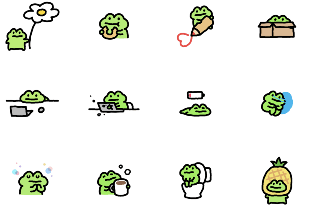 fricの特徴は、そのシンプルで可愛らしいデザイン。落ち着いた表情のカエルで、見ているだけでなんだかホッとするような温かみがあります。dricさんは「温かさと希望を人々に伝えたい」という思いを込めてこのキャラクターを創作したんだとか。