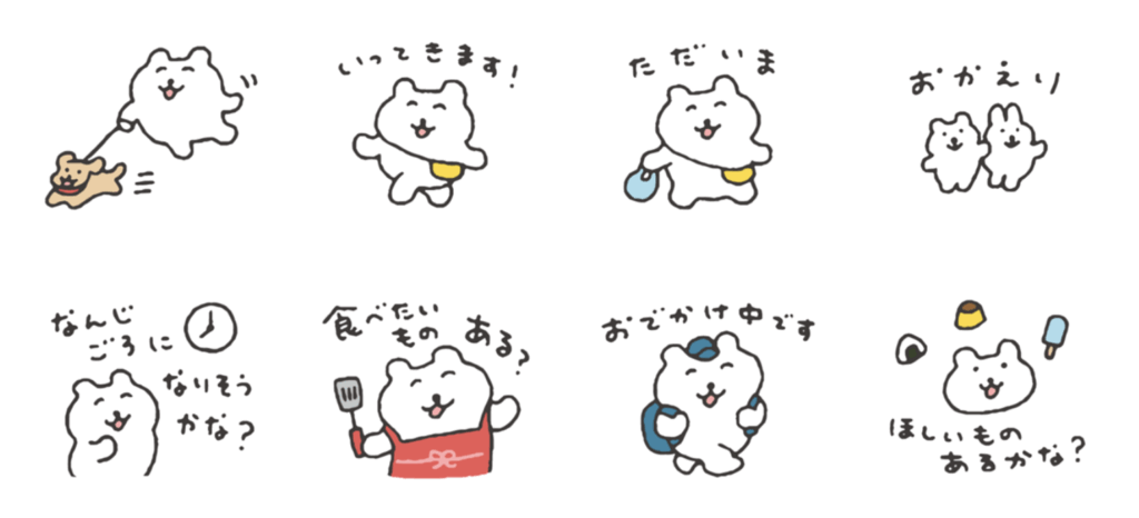 「すこやかシロクマ」「すこやかシロクマ2」「すこやかシロクマ3」と続き、「めがね」「春のおとずれ」「わくわく生活」「むりをしない」など、季節やテーマごとに様々なバリエーションが展開されています。日常で使いやすい優しいあいさつや応援メッセージが詰まったスタンプが人気です!